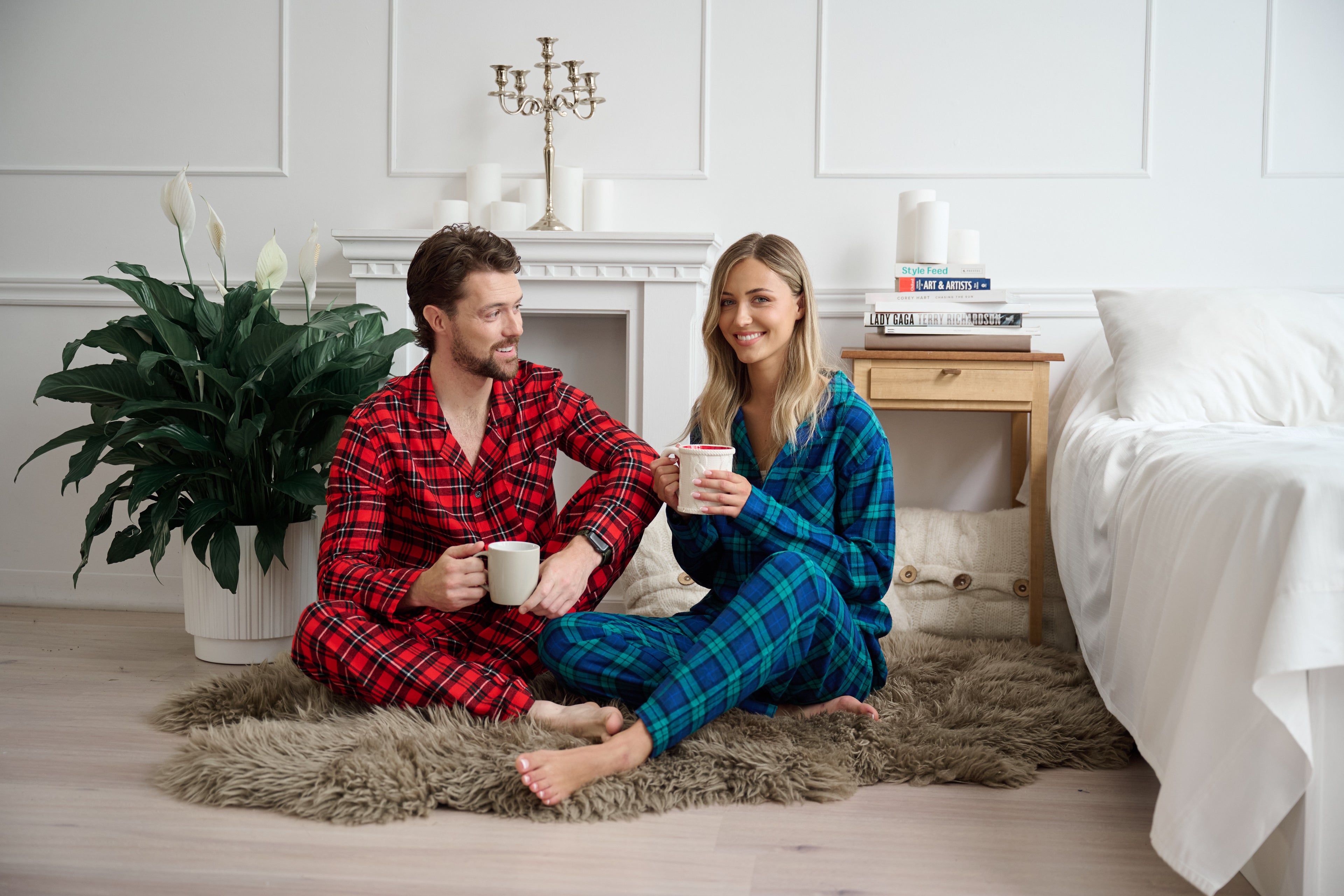 100% Premium Cotton Flannel Men's Long Button-Down Sleepwear Pajama Set