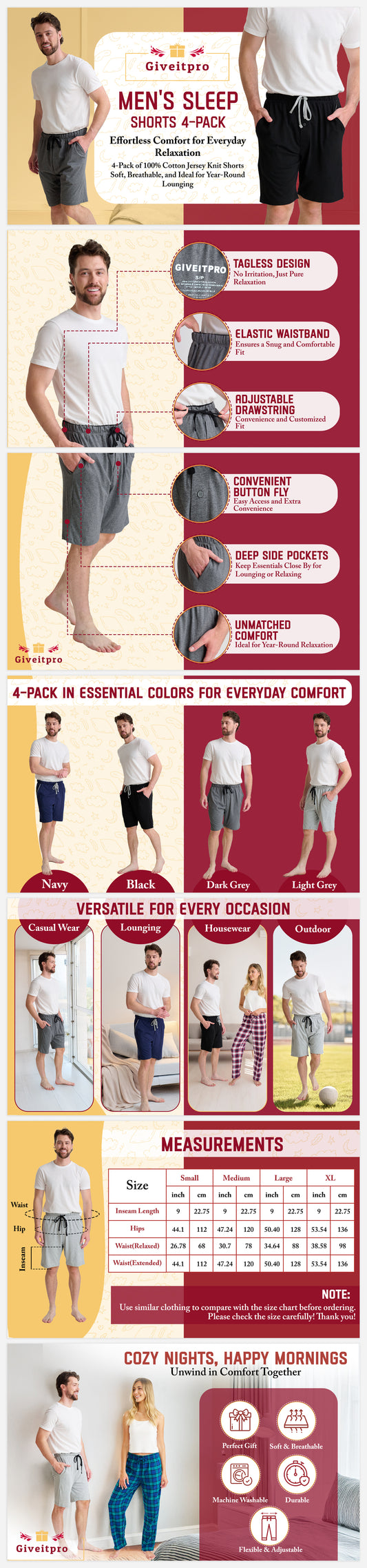 Pack économique de 4 shorts de détente actifs en jersey 100 % coton de qualité supérieure GIVEITPRO