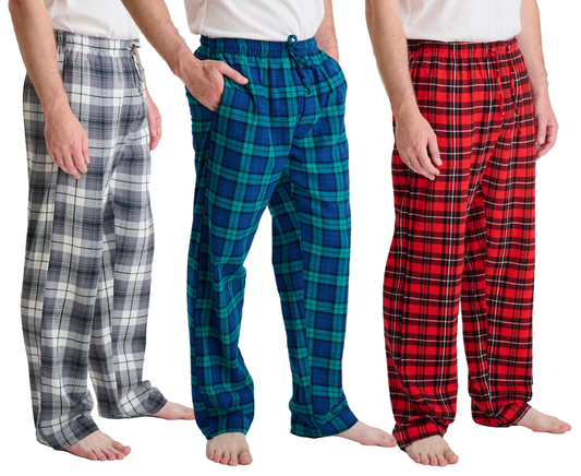Lot de 3 bas de pyjama en flanelle 100 % coton de qualité supérieure GIVEITPRO - Tissé teint en fil