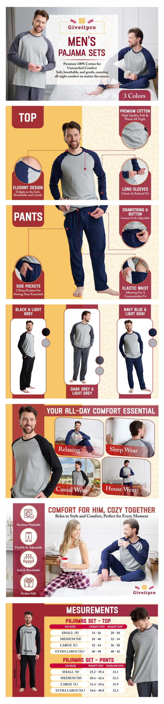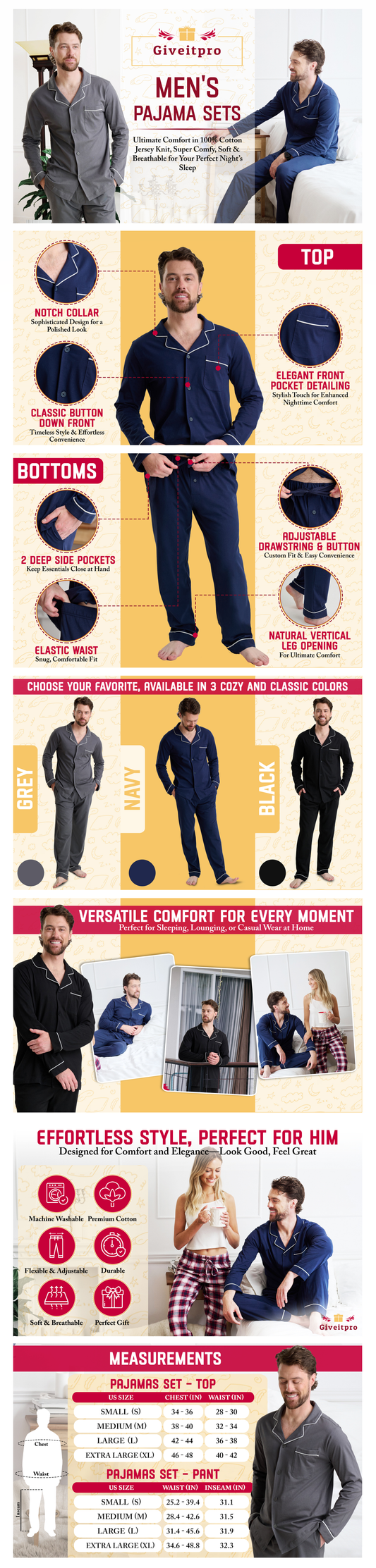 Ensemble pyjama haut et bas à manches longues pour homme 100 % coton de qualité supérieure GIVEITPRO
